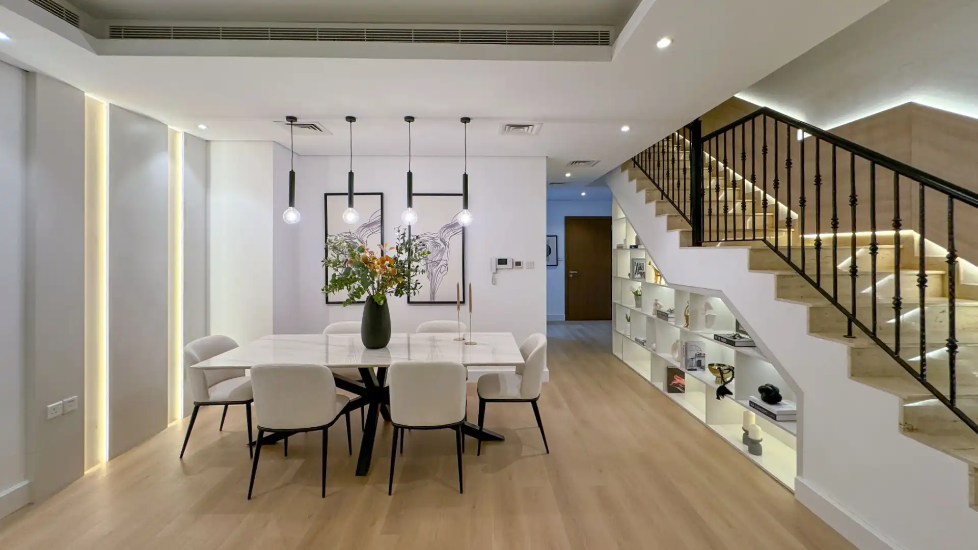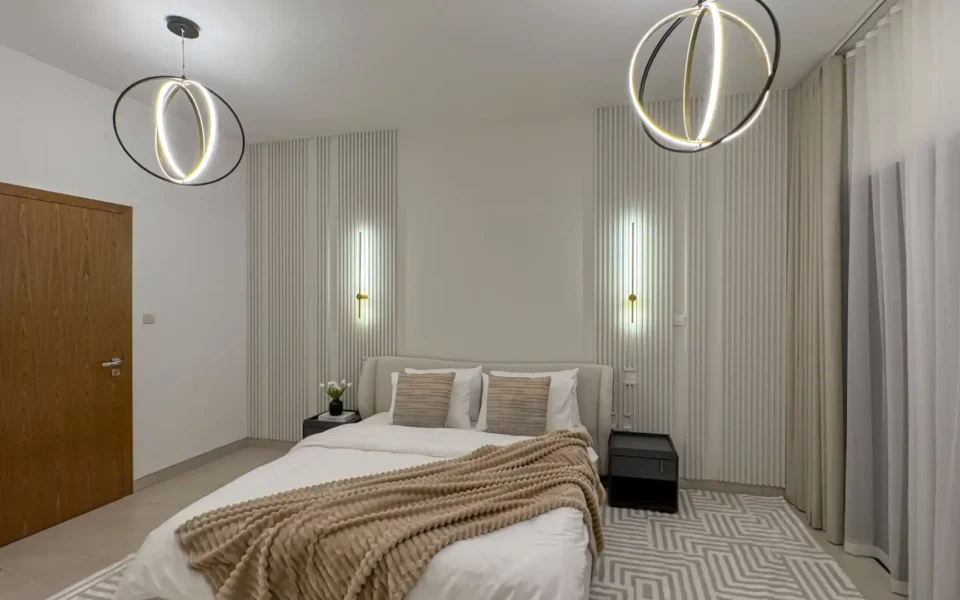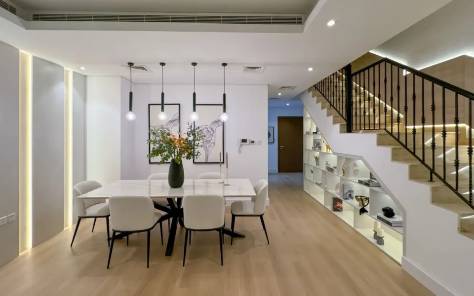 The townhouse is situated near several popular attractions, including Eisbej Park, Khansoor Park, Dubai International Cricket Stadium, Dubai Miracle Garden, Springs Souk, The Els Golf Club, and Jumeirah Golf Estates Golf Course.